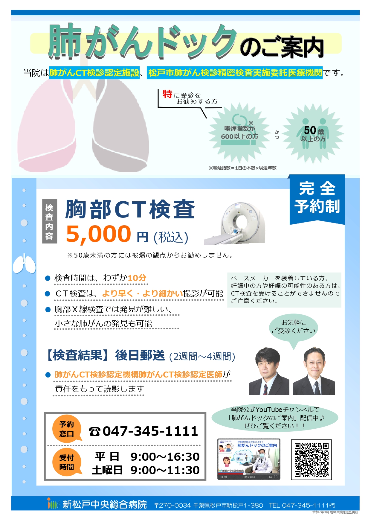 また郵送された結果について質問や相談がある場合には、いつでも読影担当医の外来にお越しください。